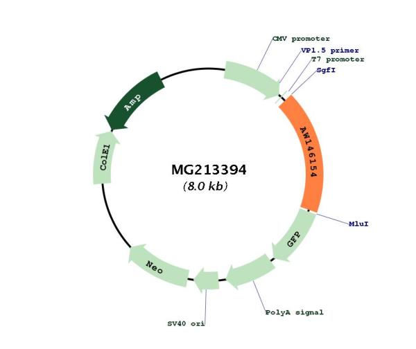 AW146154 (tGFP-tagged) - Mouse expressed sequence AW146154 (AW146154), (10ug). Note: ORF is codon optimized