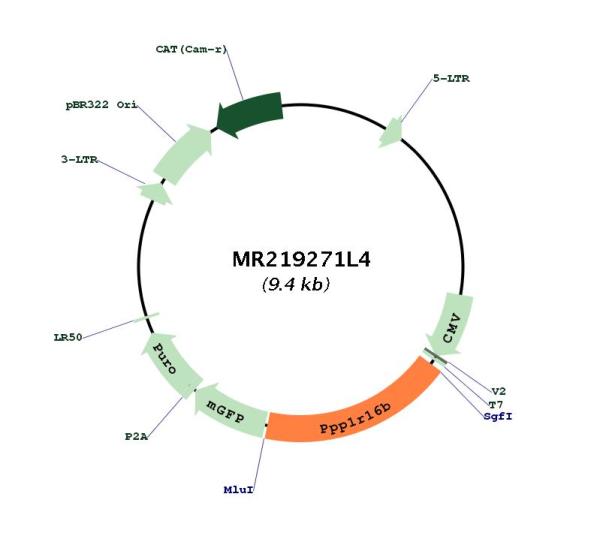 Ppp1r16b (tGFP-tagged) - Mouse protein phosphatase 1 regulatory (inhibitor) subunit 16B (Ppp1r16b) transcript variant 2, (10ug)