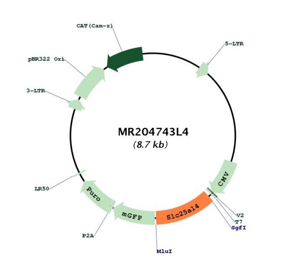 SLC25A14 (tGFP-tagged) - Human solute carrier family 25 (mitochondrial carrier, brain), member 14 (SLC25A14), nuclear gene encoding mitochondrial protein, transcript variant long