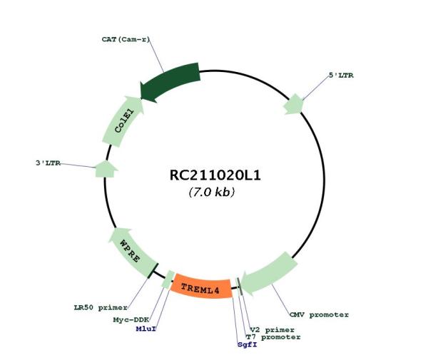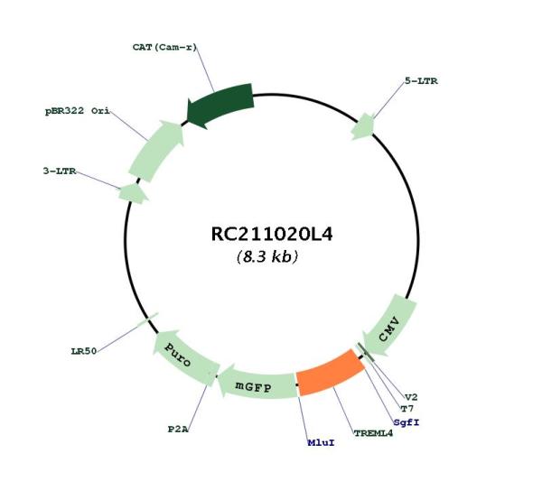Treml4 (tGFP-tagged) - Mouse triggering receptor expressed on myeloid cells-like 4 (Treml4) transcript variant 1, (10ug)