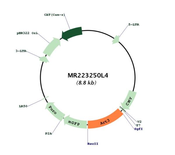 Art3 - Rat, 4 unique 29mer shRNA constructs in lentiviral GFP vector, 5µg of each construct provided